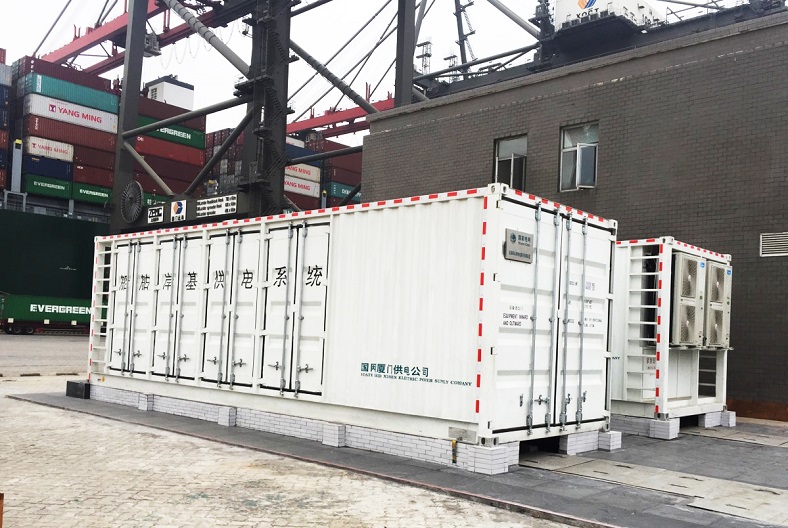 2016年12月14日,由上海艾臨科智能科技有限公司整體負責設(shè)計建造的廈門遠海集裝箱碼頭高壓船舶岸電項目-SAP智能船舶岸基電源系統(tǒng)在福建省經(jīng)信委、國家能源局福建監(jiān)管辦、省交通運輸廳、省物價局、海滄區(qū)人民政府、廈門市發(fā)改委、市經(jīng)信局、市環(huán)保局、廈門港口局、國網(wǎng)廈門供電公司、廈門運海集裝箱碼頭有限公司等單位領(lǐng)導們的見證下,與10萬噸級的長正號集裝箱貨輪完成連船供電。這標志著福建省首個船舶岸電試點項目在廈門遠海集裝箱碼頭#14泊位正式投運。