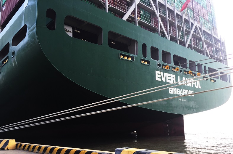 長正號集裝箱貨輪靠泊在遠海集裝箱碼頭14#自動化碼頭上,準備連接岸電。