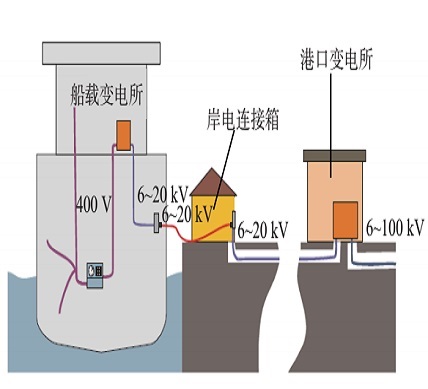 船舶岸電系統(tǒng)是指船舶在靠泊期間停止使用船上的發(fā)電機(jī)組,船上通風(fēng)系統(tǒng)、照明系統(tǒng)、制冷系統(tǒng)等其他設(shè)備的運(yùn)轉(zhuǎn)改由碼頭供電,從而減少船舶廢棄排放的供電方式。岸電系統(tǒng)主要由港區(qū)變電所、岸上電源裝置、岸電接受裝置和電纜連接設(shè)備等組成。船舶岸上電源根據(jù)電壓不同,可分為高壓岸電系統(tǒng)和低壓岸電系統(tǒng)。高壓岸電系統(tǒng)主要指岸電電源的輸出電壓為6.6KV/11KV或者以上的岸電電源系統(tǒng),對(duì)于大型船舶來說,船上各種類用電設(shè)備負(fù)荷很大,往往采用中高壓供電。低壓岸電系統(tǒng)主要指岸電電源的輸出電壓為440V/400V的岸電電源系統(tǒng),通常為用電負(fù)荷較小的船舶所采用。