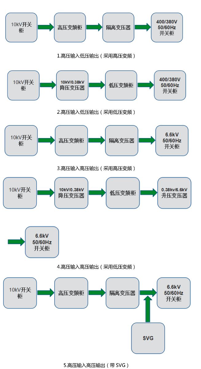 岸電系統(tǒng)技術(shù)通常按變頻器的電壓來區(qū)分有高壓變頻器變頻方式和低壓變頻器變頻方式兩種,按輸出電壓區(qū)分有高壓輸出(6.6kV實(shí)質(zhì)為中壓范疇,但通常人們已經(jīng)習(xí)慣稱之為高壓,如10kV高壓柜等)和低壓輸出。岸電的系統(tǒng)組成,見下框圖。